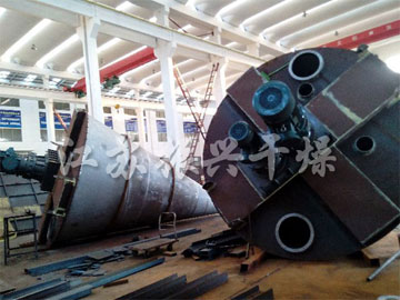 由上海某公司訂購的4臺滾筒刮板干燥機(jī),由振興干燥車間加班制作,現(xiàn)已全部制作完畢,進(jìn)行了預(yù)裝配和試機(jī)工作…